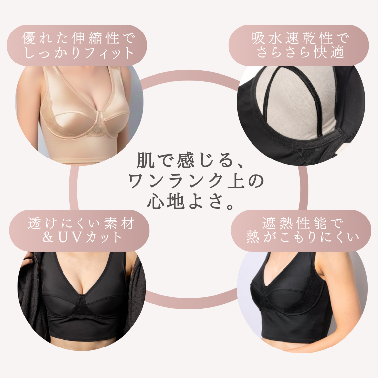 日本の繊維技術と立体設計で、バストをやさしく美しく支えます。