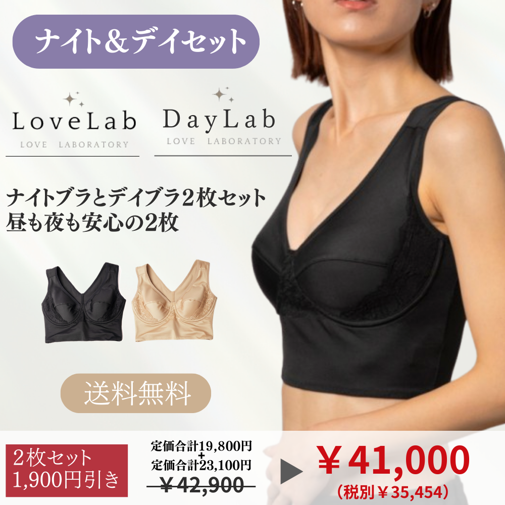 下垂阻止ナイトブラLoveLabブラックとシャンパンゴールド2枚セット 定価合計 46,200円(税抜き価格 42,000円)↓45,000円(税抜き価格 40,909円)割引額1,200円引き