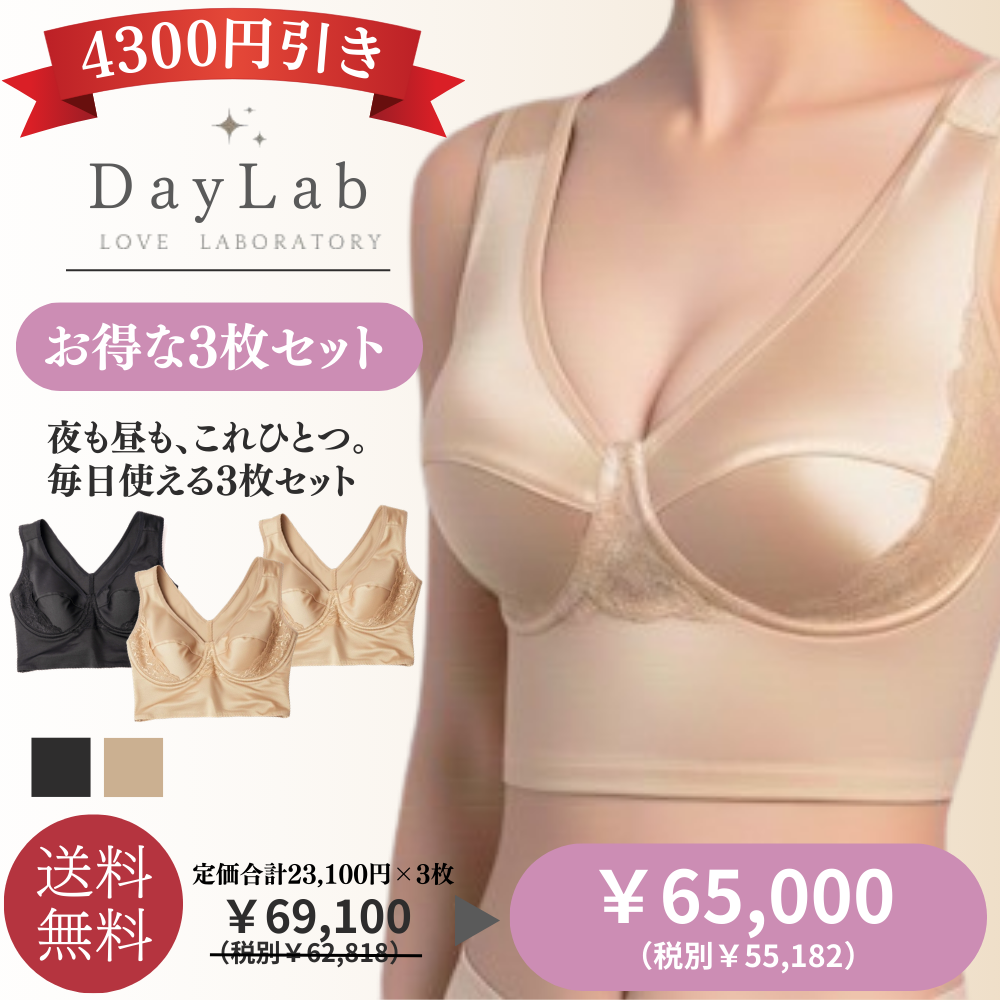 下垂阻止ナイトブラLoveLabブラック1枚とシャンパンゴールド2枚セット定価合計 69,100円(税抜き価格 62,818円)↓65,000円(税抜き価格 55,182円)割引額4,300円引き